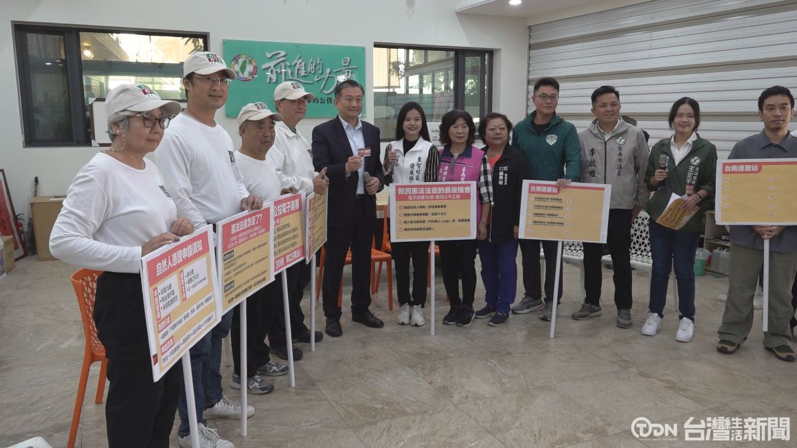 立委王定宇與人民作主副團長張人仰、市議員陳皇宇、李啟維、在地里長及友善連署店家共同召開「廢止憲訴法、救回憲法法庭」記者會,呼籲民眾把握時間踴躍參與電子連署,讓憲政系統持續來運作。