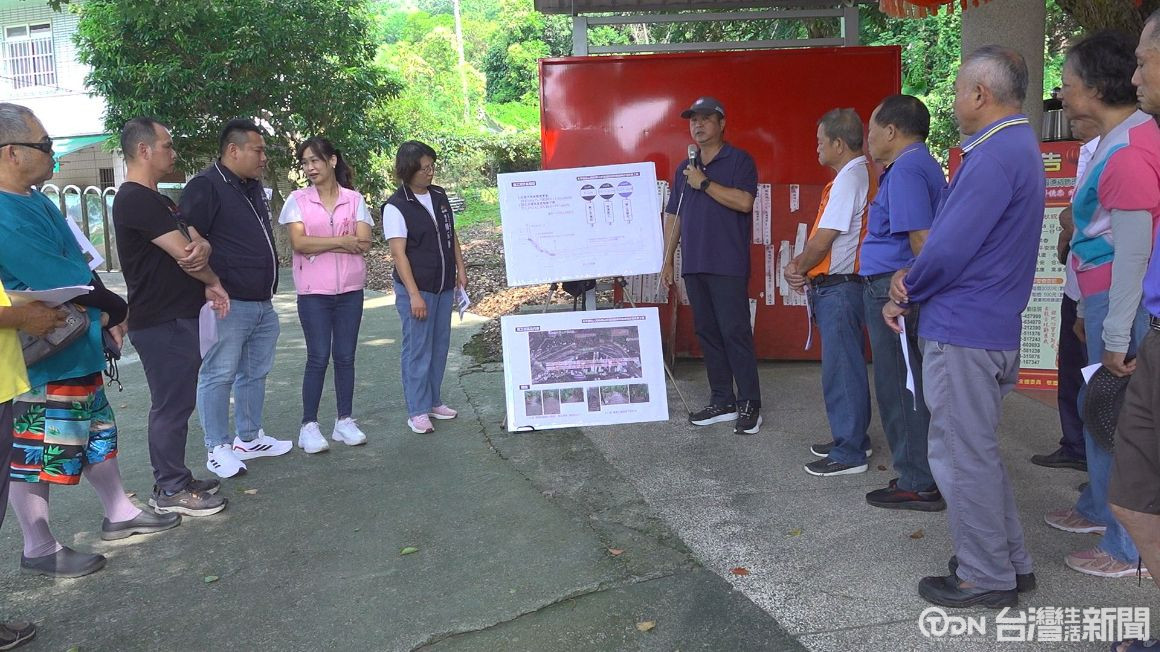 ▲觀旅局相關人員向地方民代、里長以及居民等人進行簡報,說明位在太平區的登山步道改善工程/記者 陳昭安攝