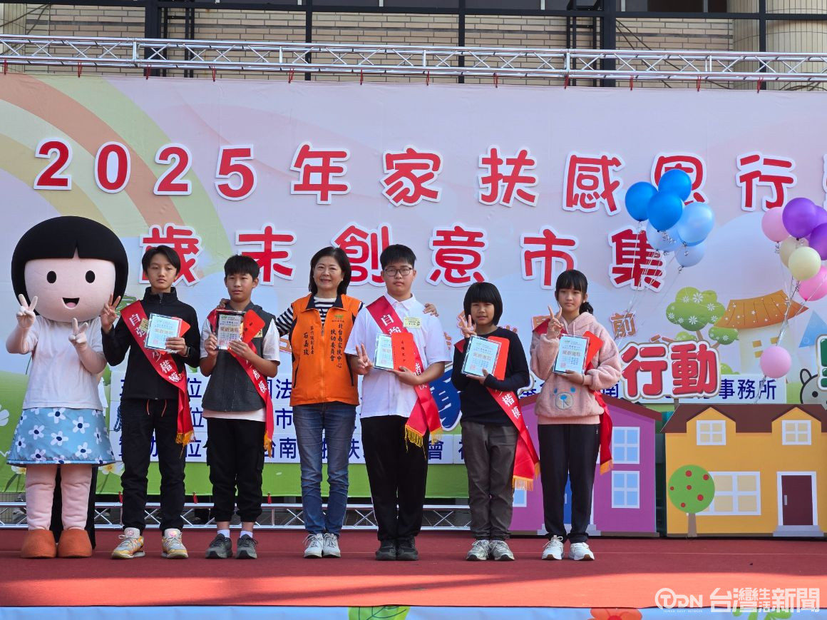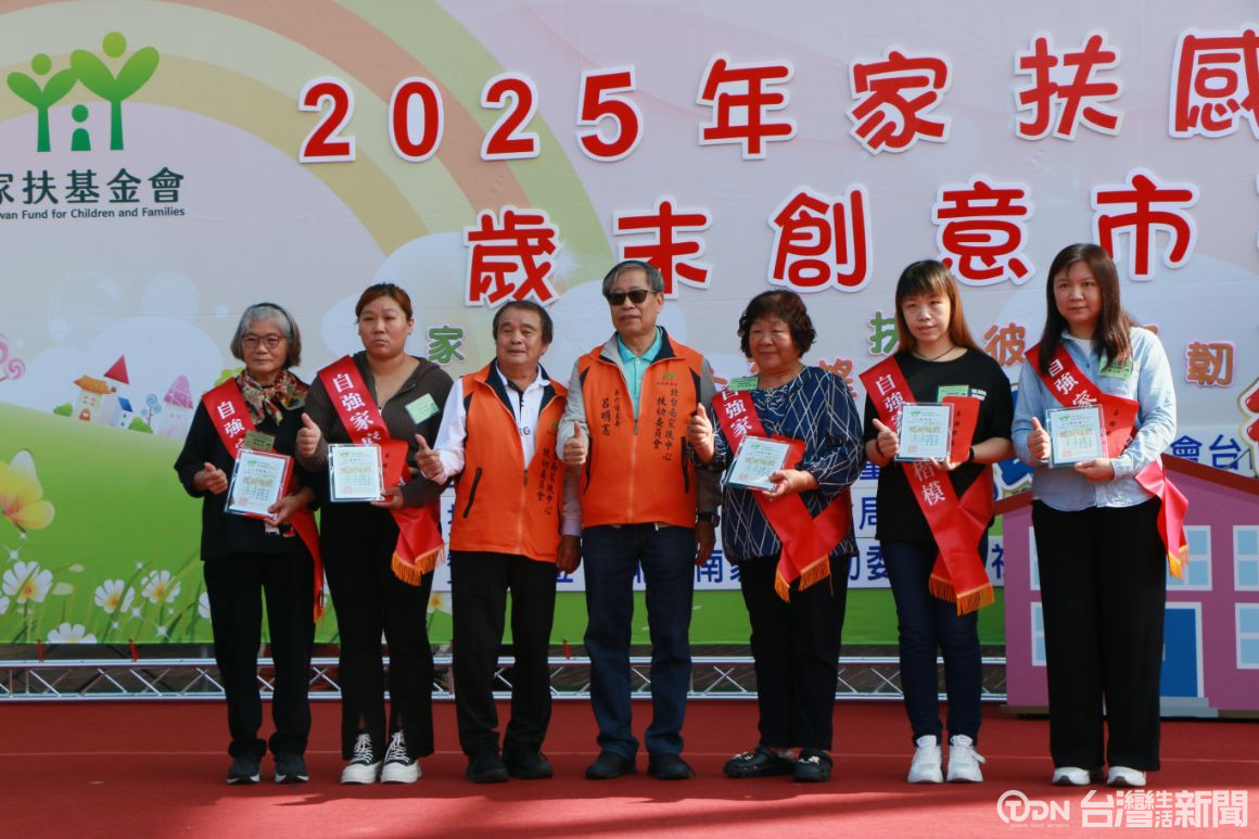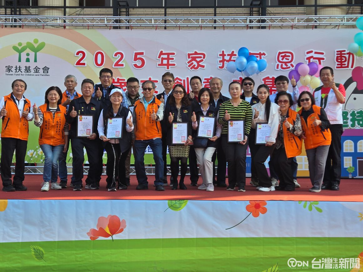 ▲北台南家扶中心歲末感恩活動在新營體育場登場,表揚五個自強家庭和自強兒少。/圖 北台南家扶中心提供