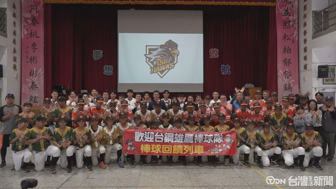 在南投在地藝人草爺牽線協助下,台鋼雄鷹「回饋列車」開進名間鄉三光國中,11位職業球員親自到場,不只準備紀念禮物送給三光棒球隊的小球員,也透過投球、打擊、守備等實際指導,分享場上經驗,勉勵孩子們勇敢追逐棒球夢想。