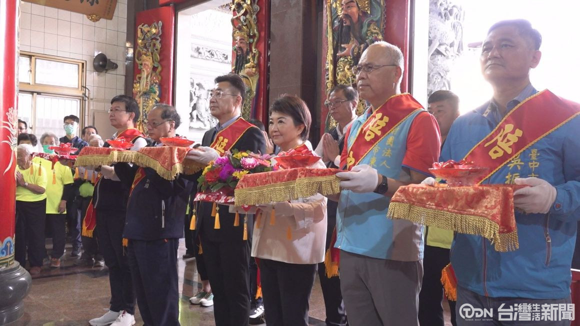 ▲盧秀燕特別前來致贈「澤厚民豐」匾額,感謝廟方長年來對地方的貢獻/記者 陳昭安攝