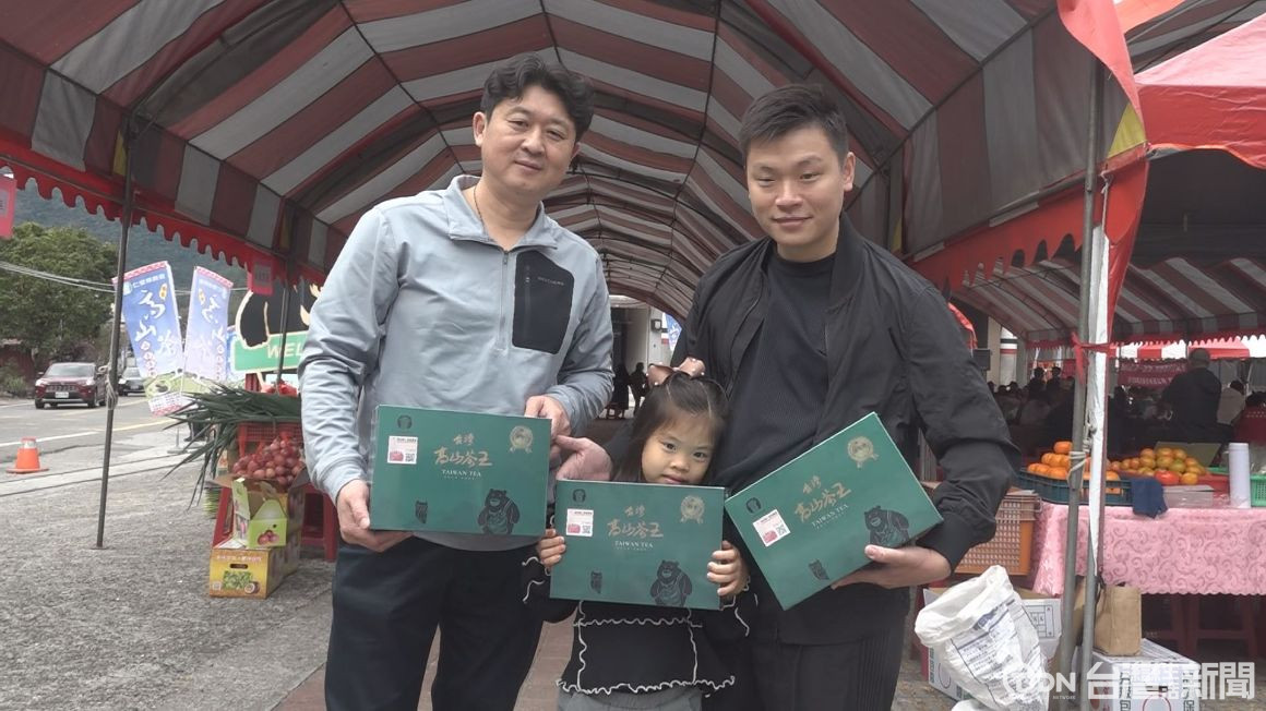 ▲茶廠業者林柏宏(右)與製茶師王齊彬(左)開心展示榮獲三大獎項的茶葉。/記者 王昭聖 攝