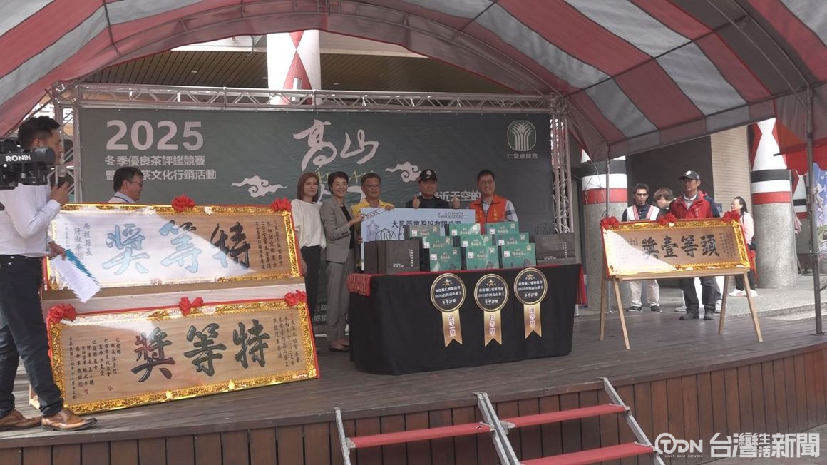 仁愛鄉農會高山冬茶評鑑競賽,舉辦頒獎典禮,今年特等獎得主相當特殊,不但是首度參加仁愛鄉農會舉辦的茶葉評鑑競賽,第一次就拿下特等獎,而且還拿下頭等及頭等一,共三項大獎,茶農將獲獎的30斤茶葉全數義賣,總金額高達一百萬,全數捐給仁愛鄉,造福弱勢學生及家庭。
