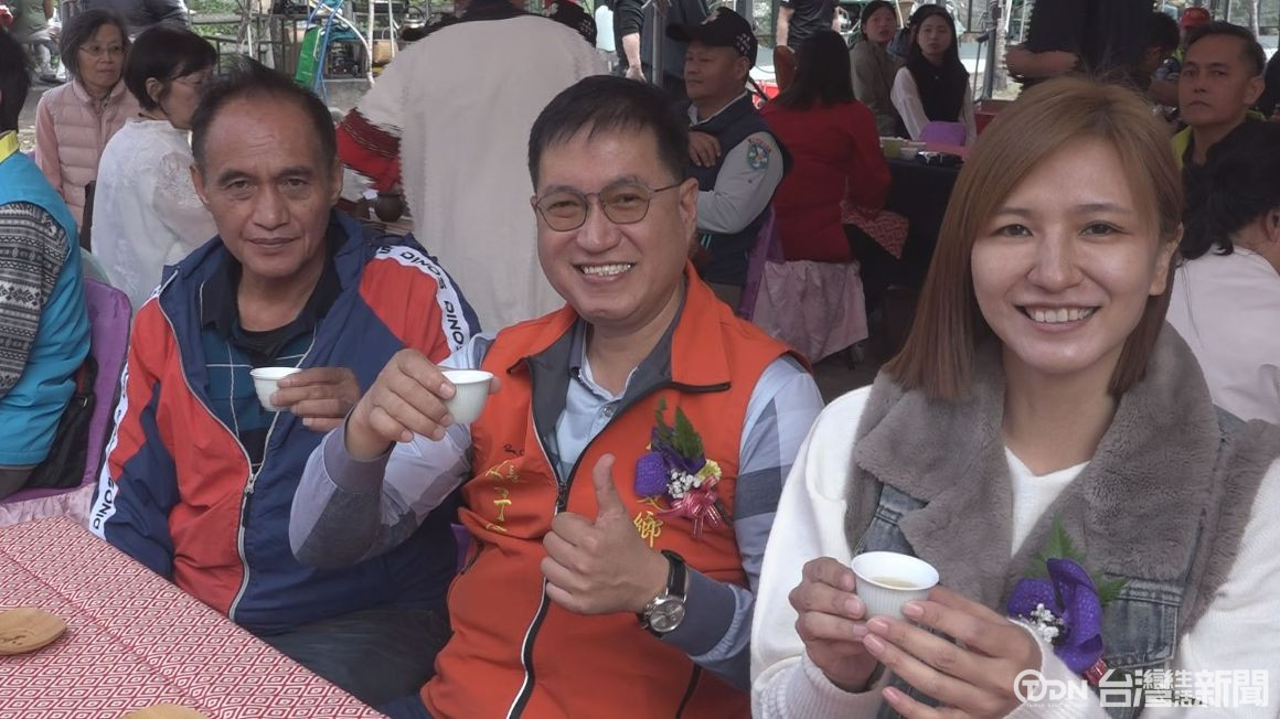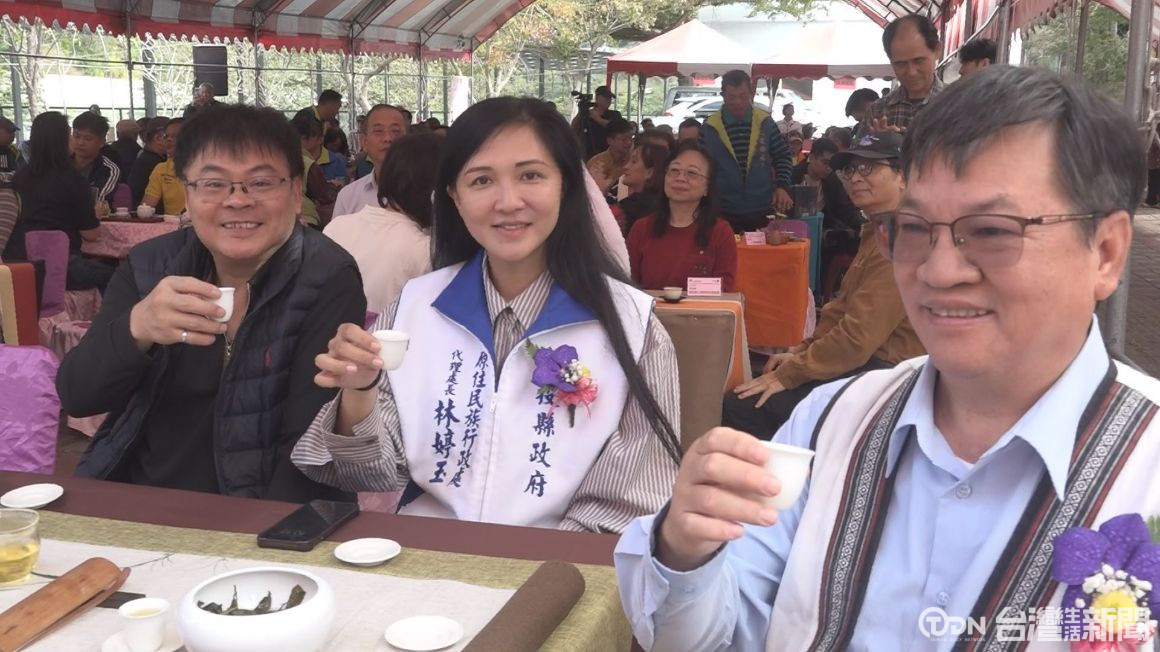 ▲來賓品茗優質仁愛鄉高山冬茶,豎起大拇指稱讚。/記者 王昭聖 攝