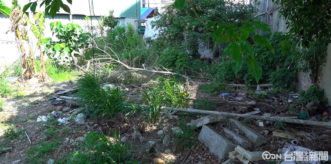 ▲圍起來的國有地,垃圾滿布,雜草叢生,不僅排水不良,環境也髒亂不堪/記者 賴秋峰攝