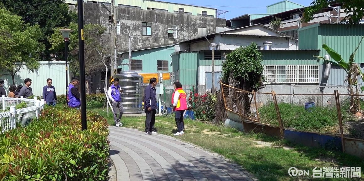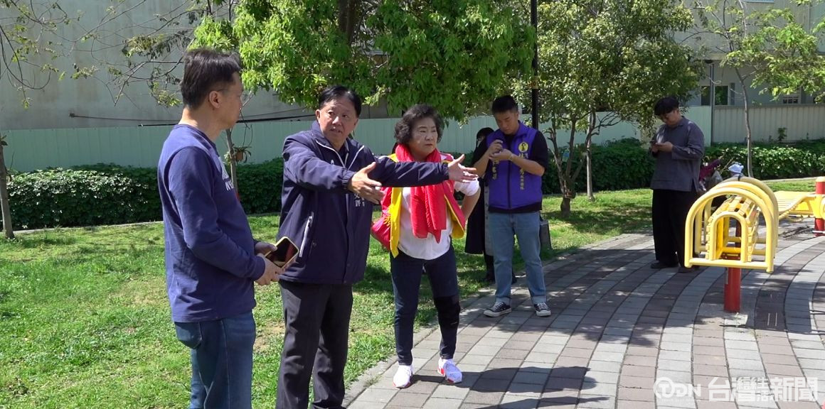 大里區光榮公園原本是稅務局宿舎,自改建成公園以來,是附近居民散步休憩的重要場所,但公園緊鄰國有地,環境髒亂,影響觀瞻,加上遊憩設備有些不足,因此里長透過民代,找來市府到場會勘,尋求改善之道。