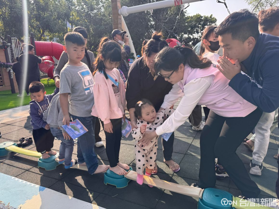 ▲太保市公所日前在太保兒童公園舉辦親子活動,現場有親子手作、闖關遊戲和幼兒園演出等豐富內容/記者黃培怡 攝。