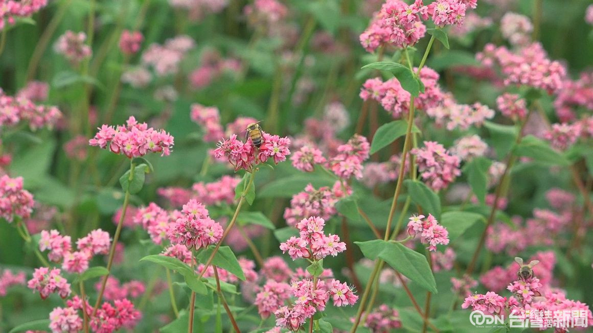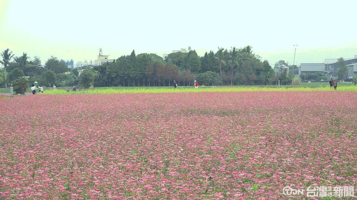 為讓農田有休復時間並減少雜草及病蟲害,農友都會利用稻田收割後的休耕期,進行綠肥栽種,最近在五福社區後溪底福德祠旁的農地,就有成片的綠肥花朵盛開,不僅有向日葵,還有顏色鮮豔的百日草,更有粉紅蕎麥花,一整片看過去相當美麗,也吸引不少民眾前來