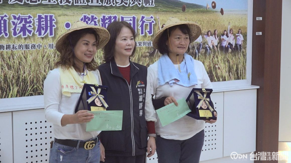 ▲台中市文化局主秘親自頒獎,肯定葫蘆墩文化中心志工隊的表現/記者 李晉仰攝
