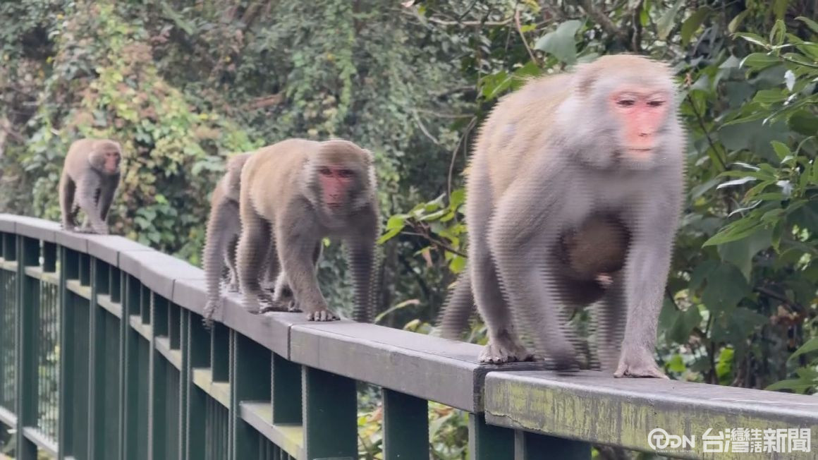 ▲猴子沒有出現攻擊行為,專家認為猴子還沒養成搶食的經驗/記者 范宏坤 攝