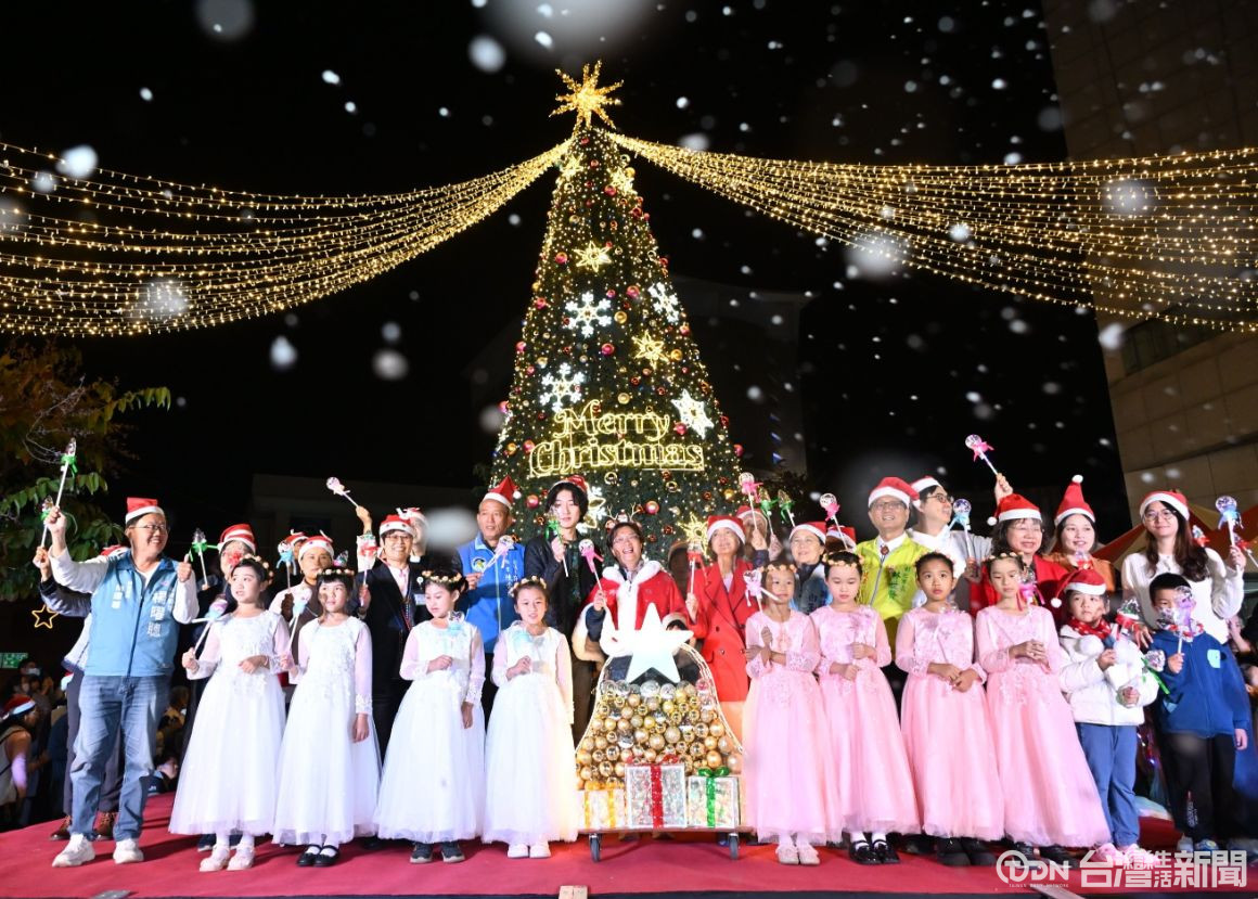 為迎接聖誕佳節,彰化縣政府於縣立美術館前廣場打造高達10公尺的夢幻聖誕樹,並攜手彰化縣音樂河社會福利協會,舉辦「2025愛在彰化聖誕嘉年華園遊會暨點燈活動」,由縣長王惠美與協會創辦人阮慧玲等人共同點亮主燈,現場氣氛溫馨熱鬧。