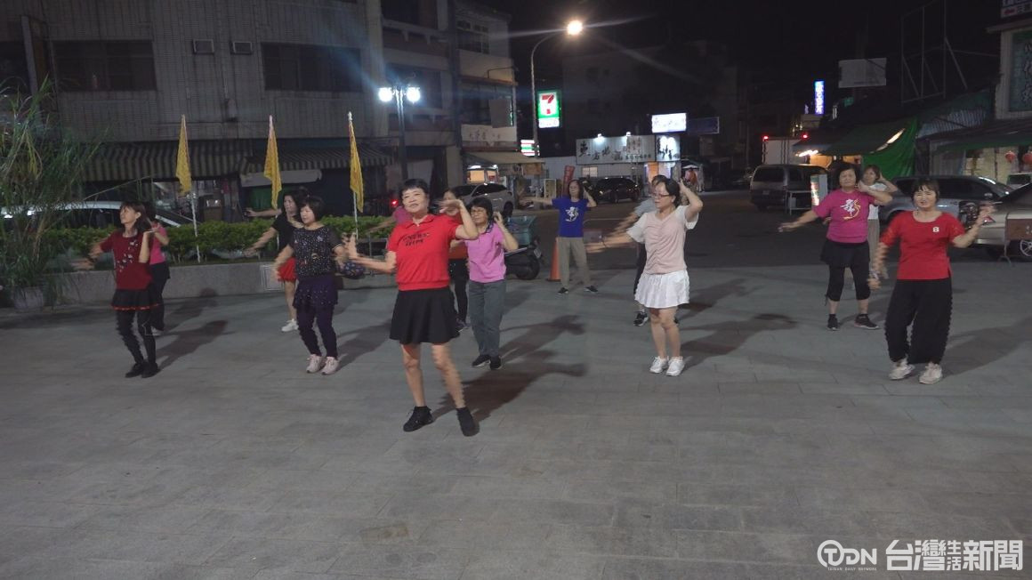 ▲韓秀梅幾乎每天晚上都在古坑嘉興宮前,義務帶想運動.或想學舞的學員跳舞 / 記者 王可萱 攝