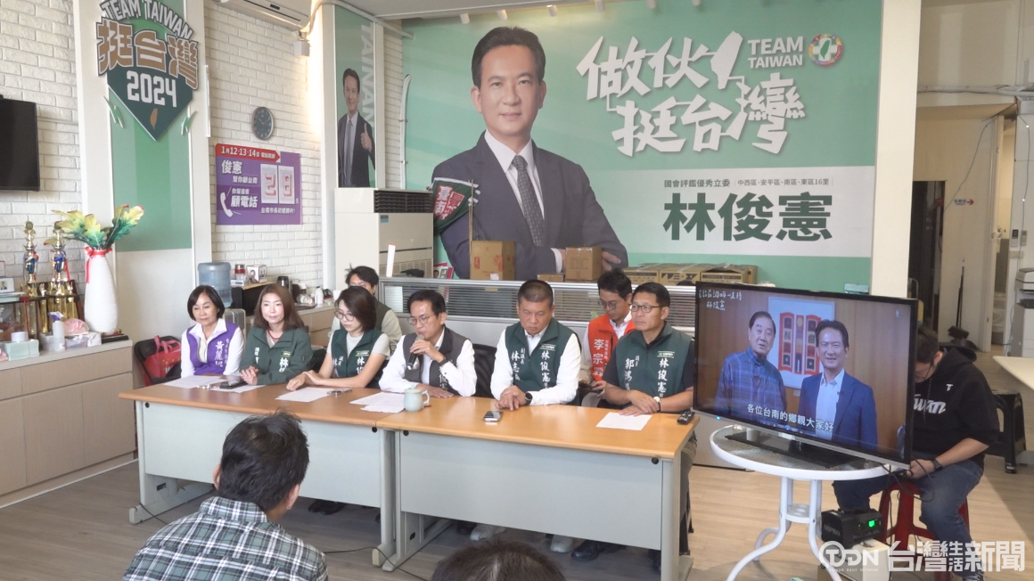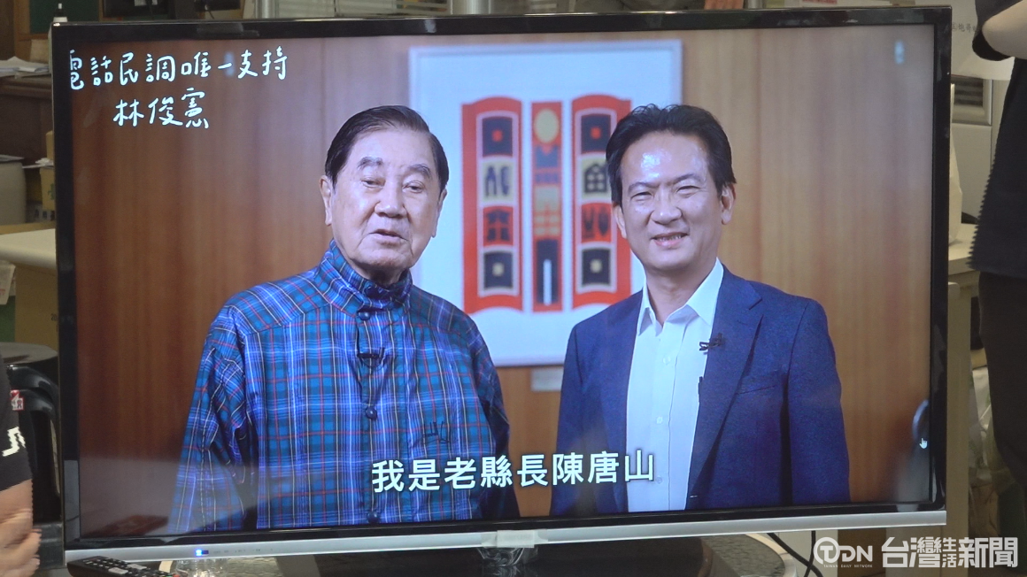 ▲民進黨臺南市市長參選人林俊憲公布跟前臺南縣長陳唐山一起錄影的推薦影片。/記者 蘇英豪攝