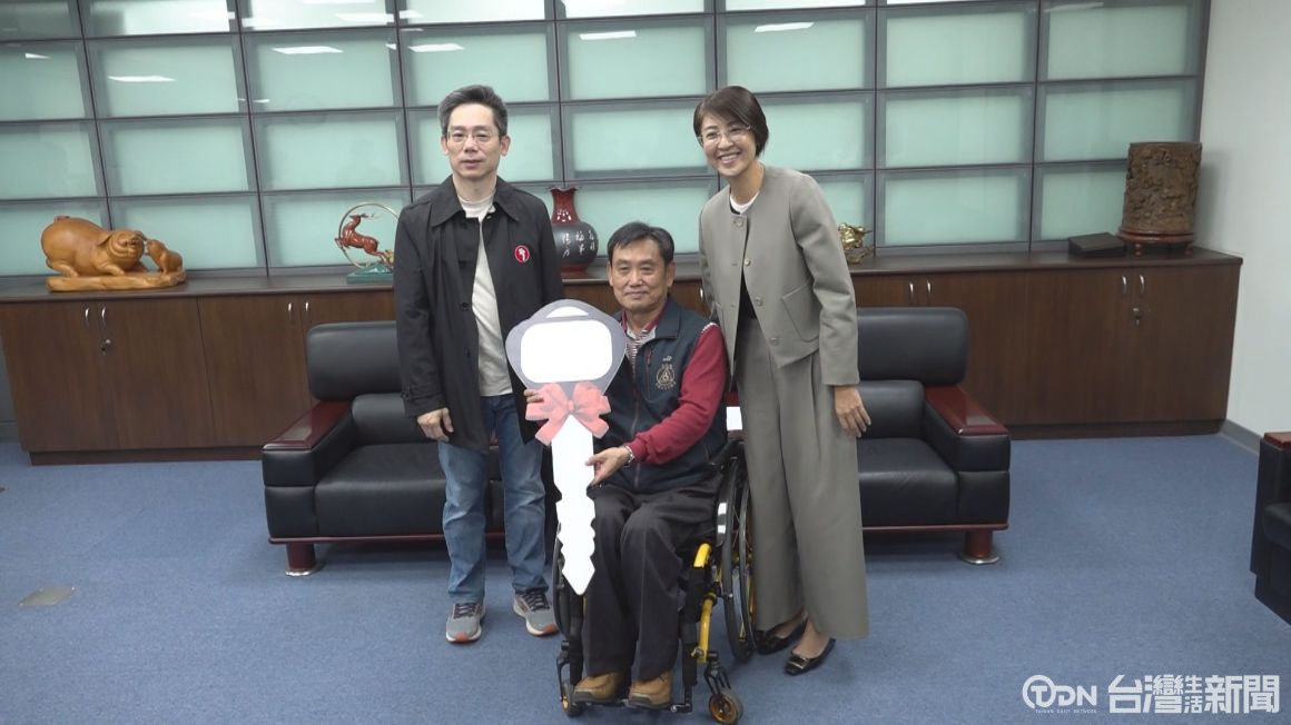 ▲中華耆幼關懷協會贈交象徵車輛使用權的鑰匙,復康巴士將由南投縣脊髓損傷者協會使用/記者 蔡育楷 攝