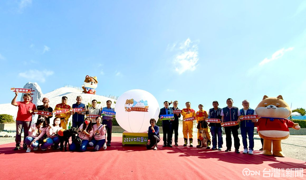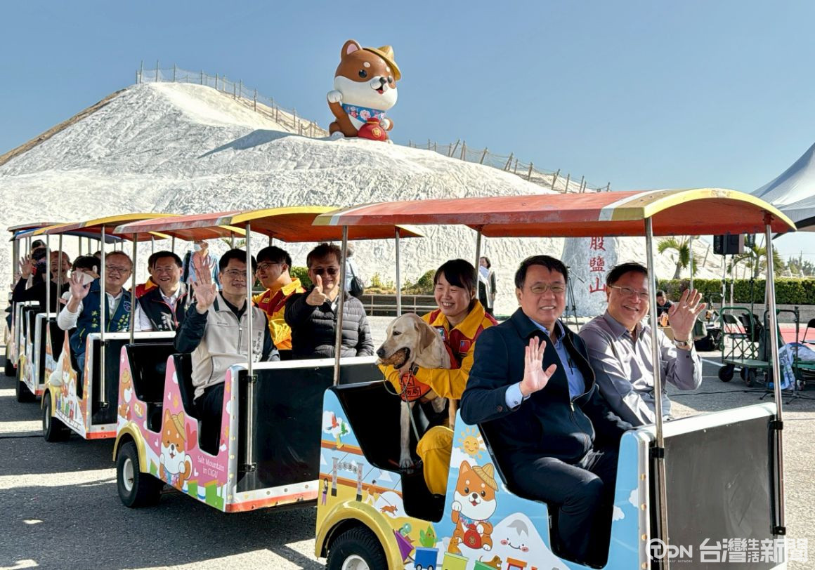迎接2026年,七股鹽山年度最受期待的裝置藝術,17號正式亮相,今年以可愛的柴犬為主角,圓滾滾的模樣抱著鹽包,就像是鹽山的守護員,也象徵柴運來到,希望把滿滿的祝福傳遞給每一位到訪的旅客。