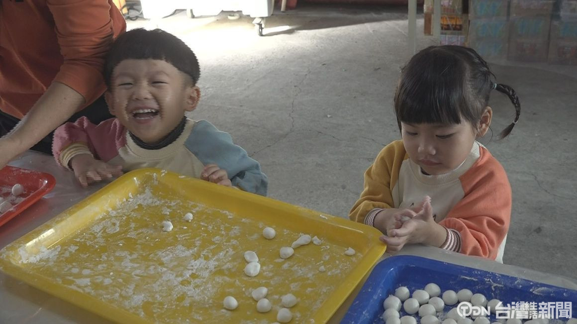 ▲現場大人小朋友一起搓湯圓,充滿過節氣氛,笑聲不斷。記者 謝沂辰/攝