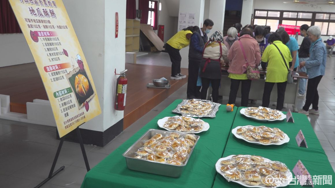 ▲推廣竹山在地農產,社區居民齊學做地瓜酥餅。/記者 何羿勳 攝