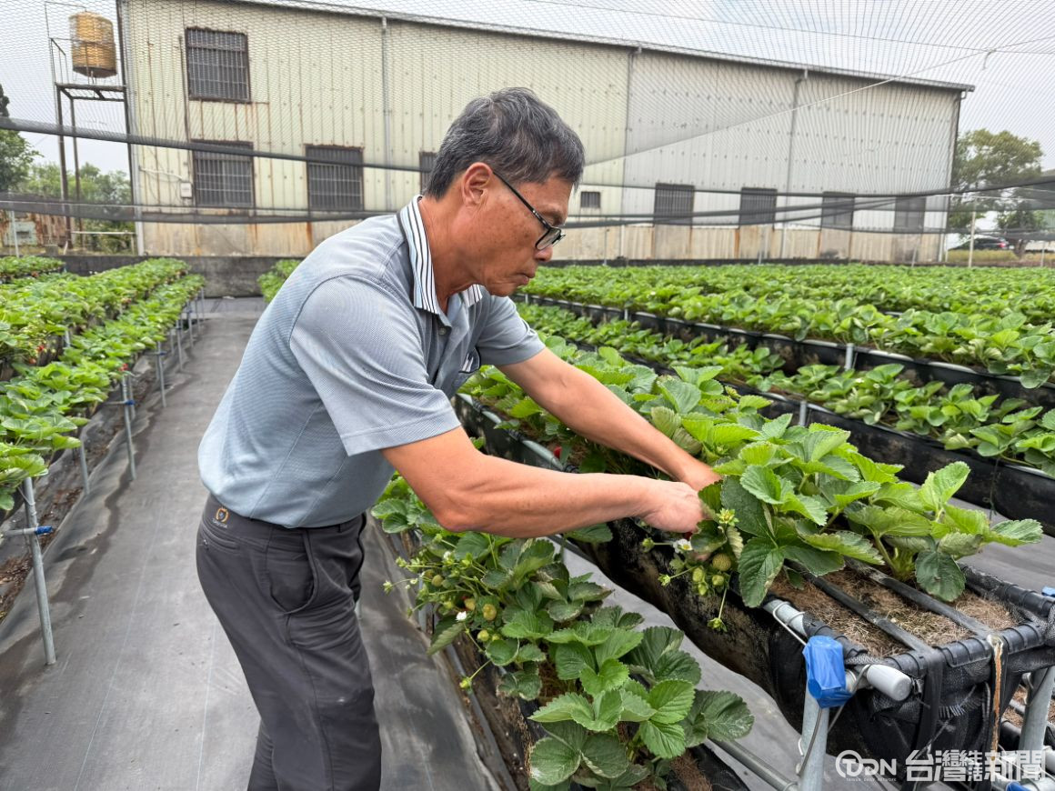 ▲今年因暖冬影響草莓收成,預計再等1個月即可採收。/ 記者 林詩涵 蕭建緯 攝