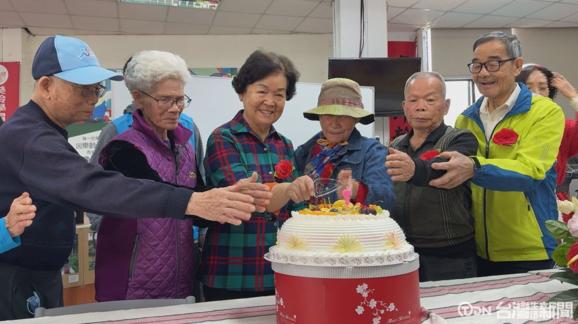 ▲魚池鄉東興長青會歷史悠久,在歲末年終都會舉辦聯歡活動,祝福會員生日快樂,切蛋糕/記者 范宏坤 攝