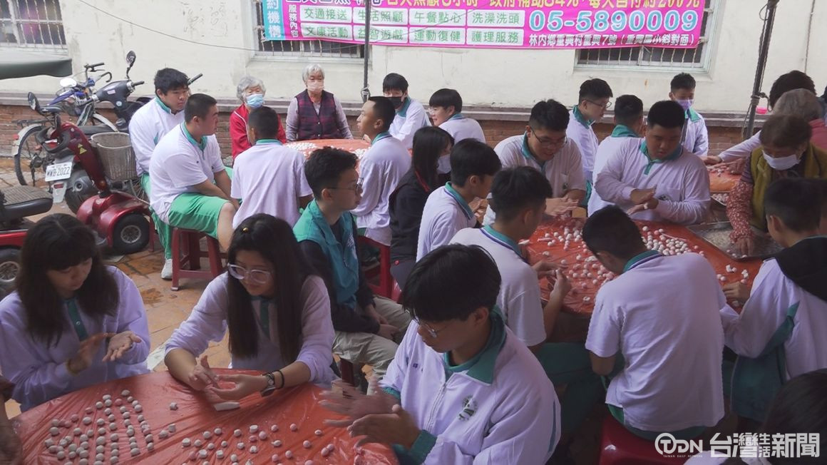 ▲林內鄉進興宮邀請社區長輩與林內義峰高中學子共同搓湯圓/記者 江儀 攝