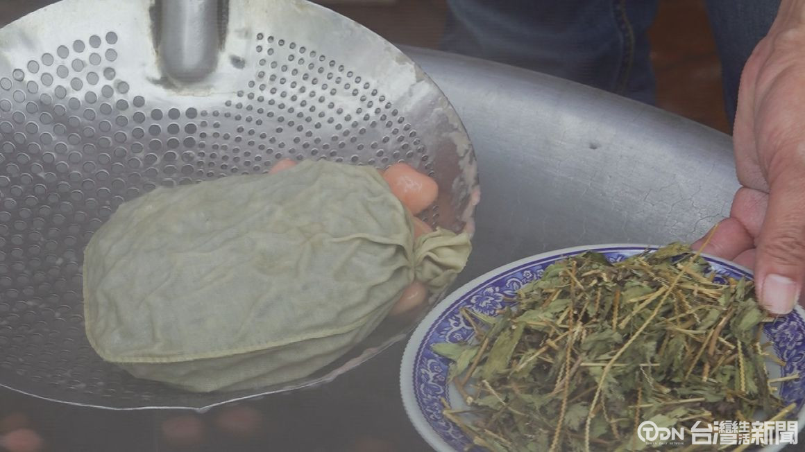 ▲林內鄉進興宮與雲林縣中藥商公會監事邱世文合作,舉辦冬至「健康古早香」煮湯圓活動,除了在湯圓內加入生麥芽調味助消化,同時還使用天然甜菊葉來取代傳統的砂糖,讓民眾可以吃的開心也吃得健康。/記者 江儀 攝