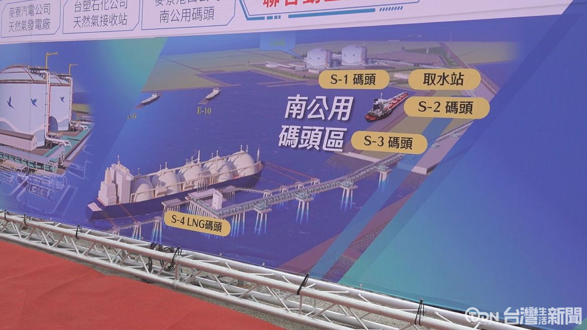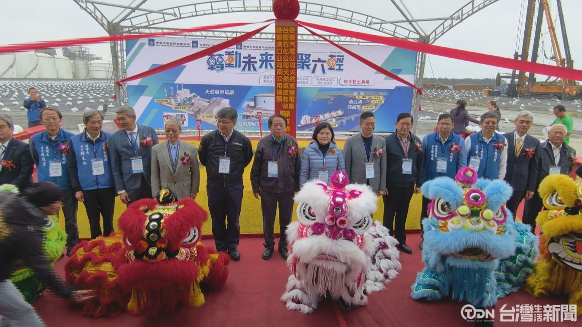 ▲台塑石化公司為配合政府能源政策,投資逾1300億元將雲林麥寮六輕汽電廠轉型為天然氣發電,設置麥寮南公用碼頭及LNG天然氣接收站(六接)和天然氣發電廠工程,並於19日早上舉辦聯合動土儀式。/記者 陳佳昇 攝。