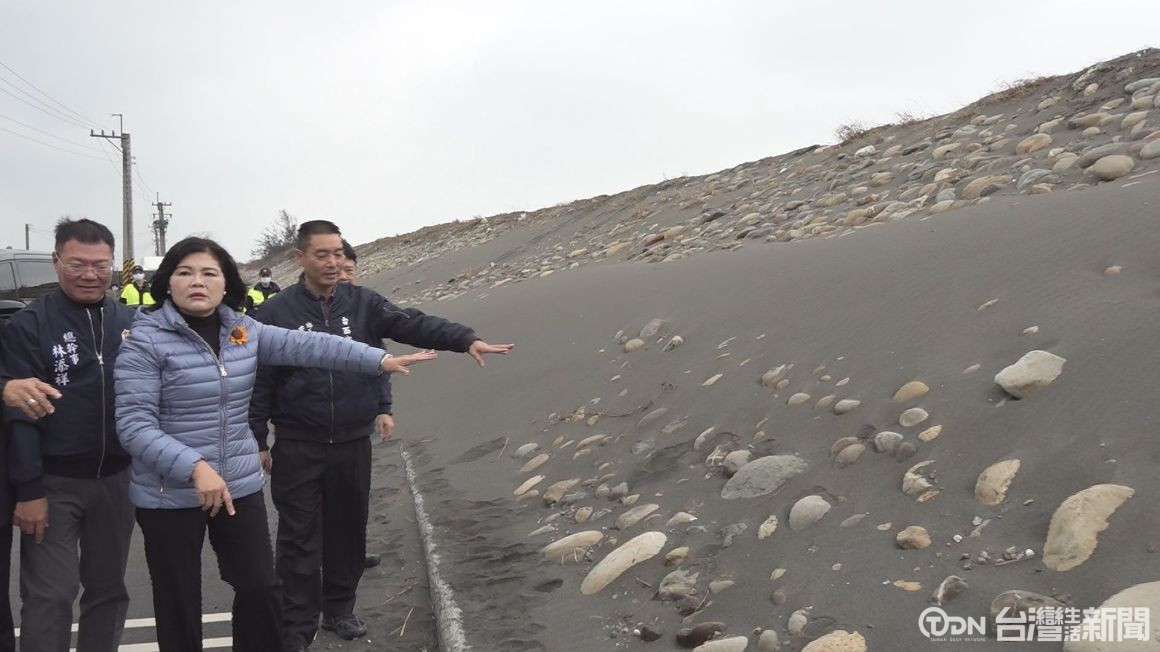 ▲為提升堤身強度,則於堤前坡拋石培厚增及堤後坡設置混凝土坡面工。本案改善長度為1,960m,可將台西鄉沿海堤岸高度不足堤段通盤改善,防止颱洪海潮侵襲,保障地方居民生命財產安全。/記者 陳佳昇 攝。