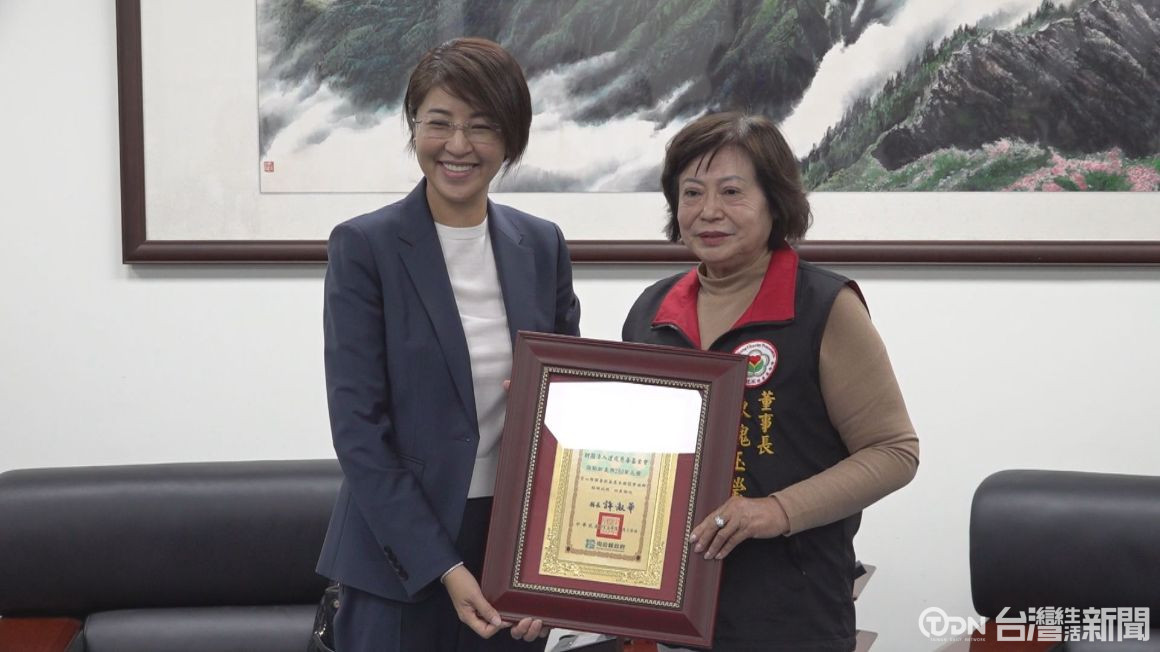 ▲縣長許淑華致贈感謝狀,感謝達成慈善基金會長期投入公益、送愛到南投/記者 蔡育楷 攝