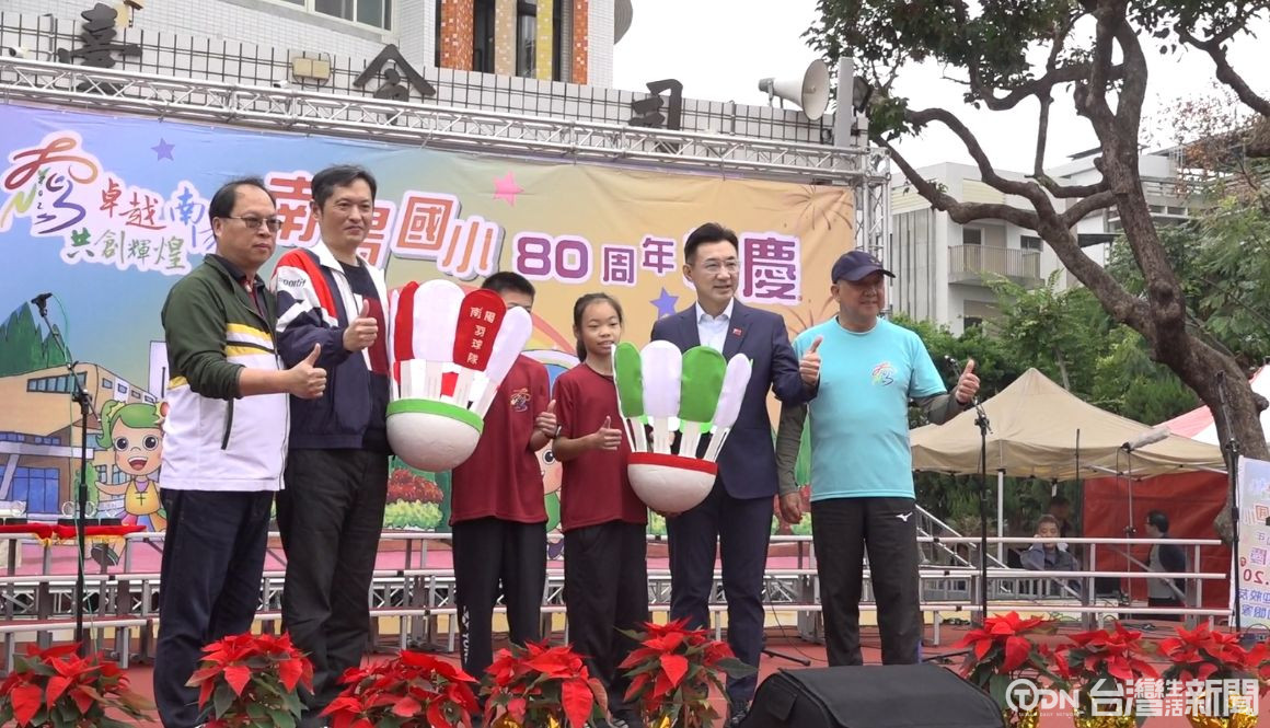 豐原區南陽國小80周年校慶,三千多名的師生、家長同慶熱鬧非凡,立法院副院長江啟臣媒合社會資源,送上9000顆羽球生日大禮,期盼能為孩子們,打造更好的學習及運動環境,也以實際支持羽球訓練。