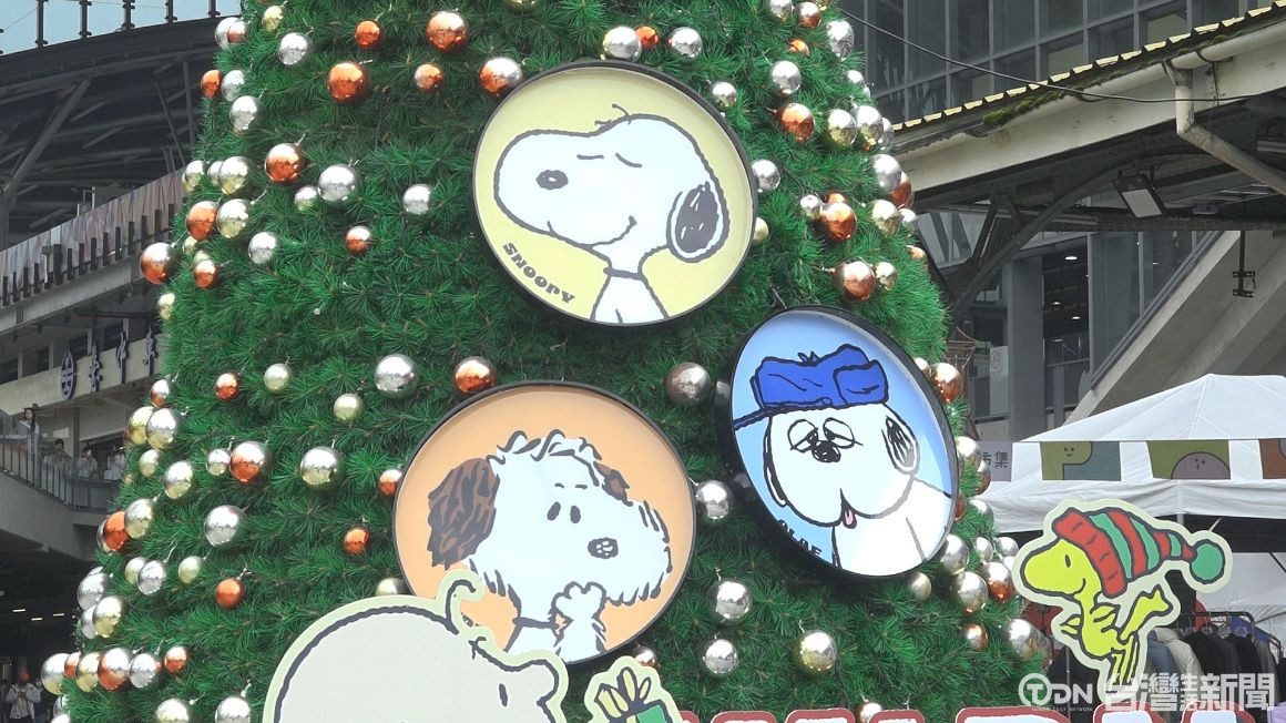 可愛的史努比耶誕樹出現在車站,立刻吸引大小朋友目光,另一邊還有角落小夥伴,呆萌模樣好逗趣,台中火車站今年耶誕節,兩大IP耶誕樹同時亮相,讓車站變得熱鬧起來。
