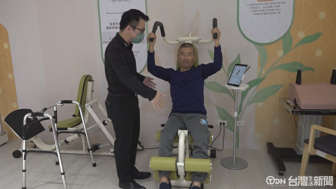 ▲長輩使用訓練器材進行復健運動,透過規律訓練延緩身體退化/記者 蔡育楷 攝