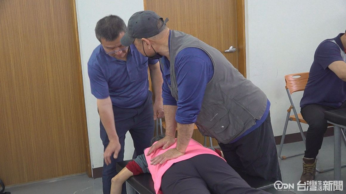 ▲除了物資外,還有專門的推拿師幫長輩舒壓按摩/記者 陳昭安攝