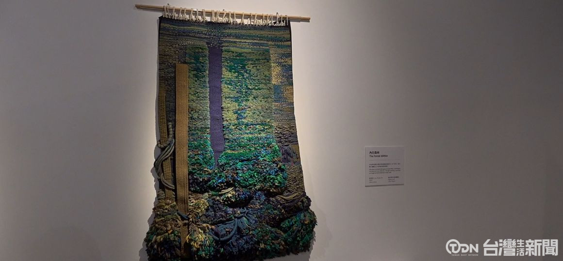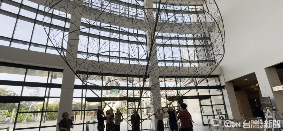 ▲高達10公尺的藝術共創品「線與脈」,呼應了纖維工藝博物館的典藏作品〈內在森林〉/記者 賴秋峰攝