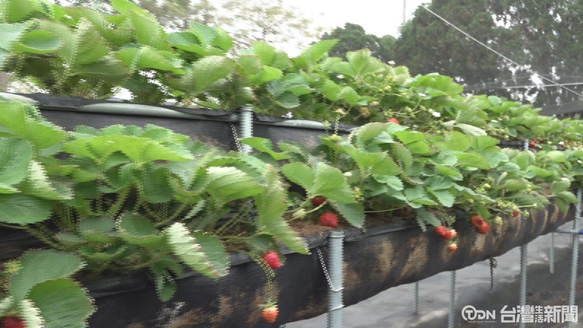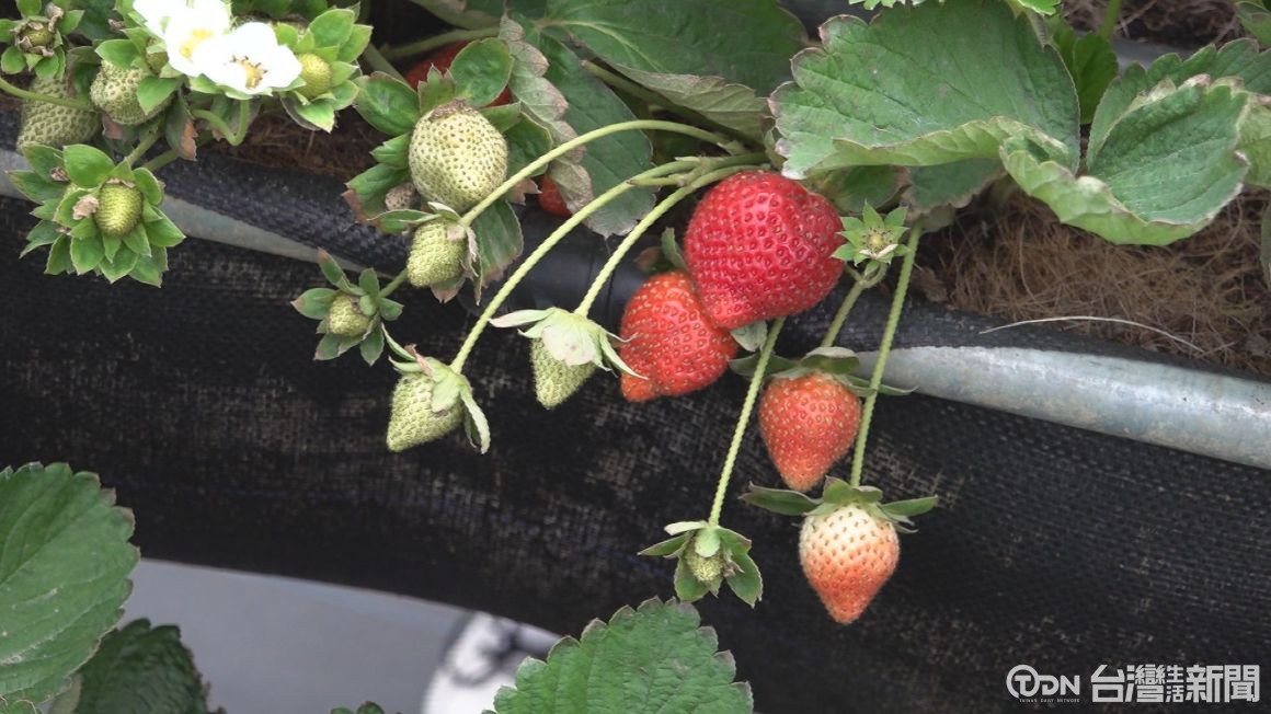 ▲今年冬天氣溫忽冷忽熱,善化草莓也連帶受影響,氣溫太冷,會延後生長,若是太熱,則可能不開花。/記者 蕭建緯攝