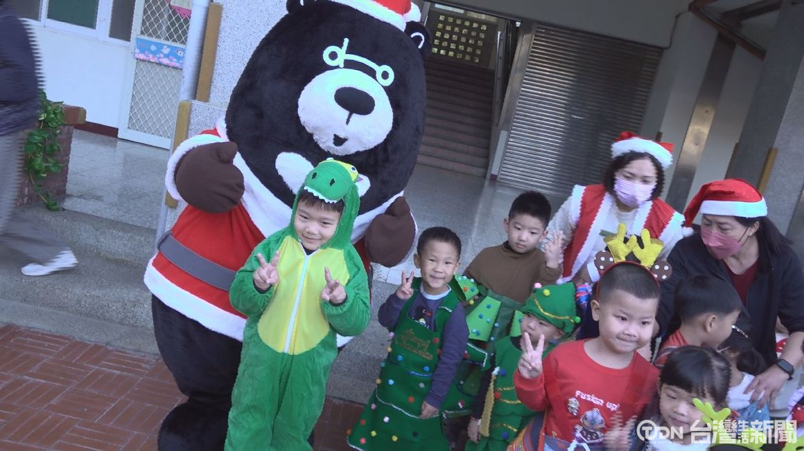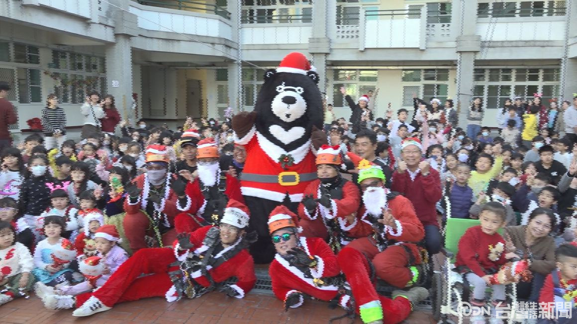迎接歡樂聖誕節,台中市虎行特搜隊成員以斜降垂降及滑降等方式,以他們擅長的搜救技巧,帥氣出沒在福陽國小,讓小朋友們好驚喜,在地的菓子業者出動dodo熊來送糖果禮,渡過最開心的聖誕節。