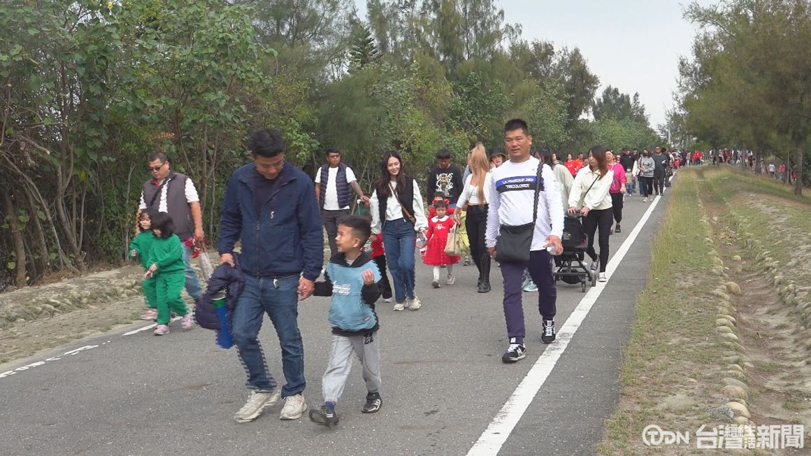 ▲大家手牽手來到口湖宜梧滯洪池走踏,也一起度過快樂的聖誕節。/記者 陳佳昇 攝。