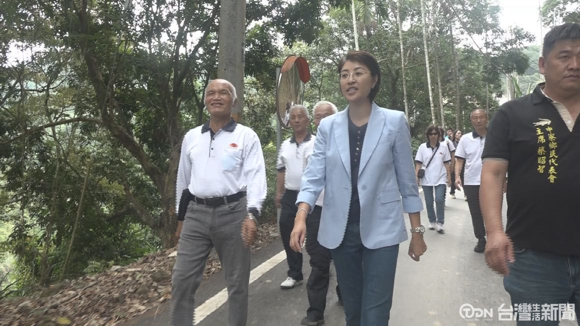▲圖為南投縣長許淑華到現場會勘了解,決定由縣府投入經費,辦理道路拓寬改善工程/記者林妤昕攝