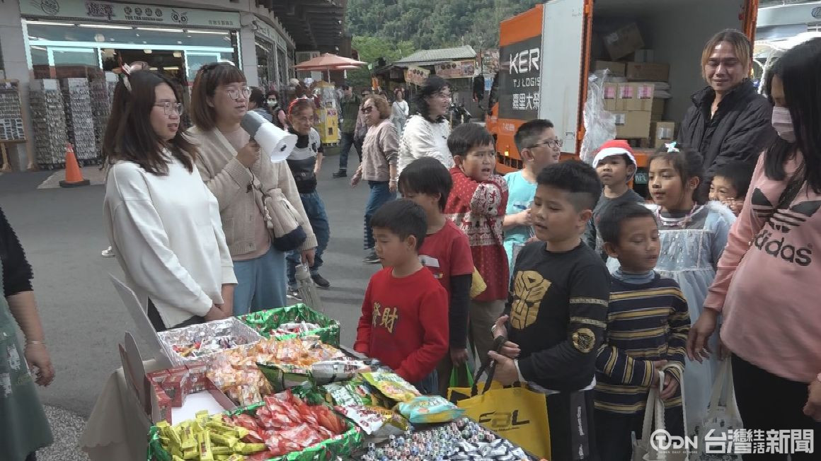 ▲在老師的帶領下,前往伊達邵商店街向店家討糖,小朋友透過歌舞表演,向店家報佳音,祝福聖誕節快樂/記者 范宏坤 攝