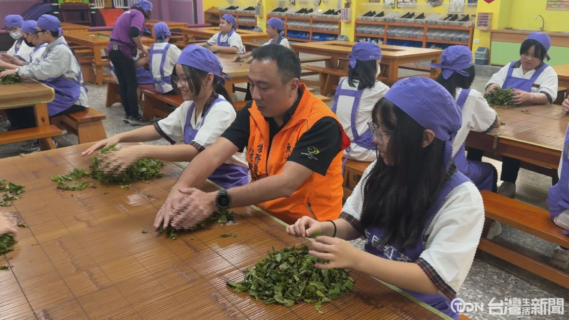 ▲要如何體驗魚池鄉紅茶文化,首先主辦單位準備茶菁,讓師生透過揉茶的過程,來感受茶香的變化/記者 范宏坤 攝