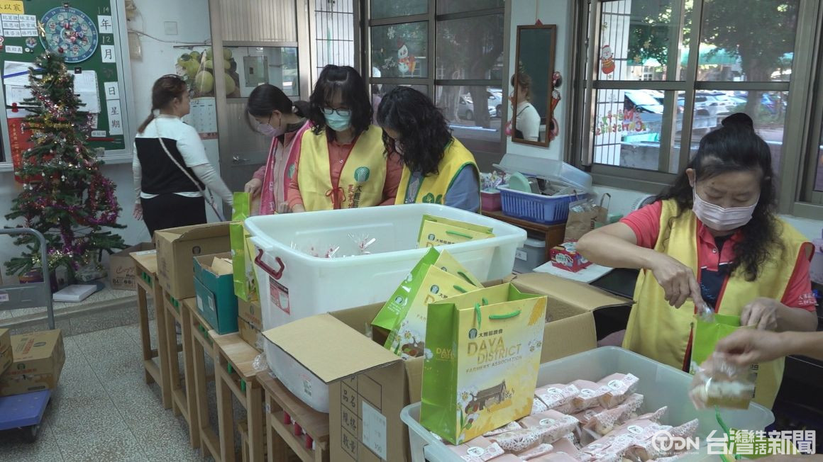 ▲家政班媽媽將東西包裝進小袋子中,充滿愛心的小禮物,要來送給大雅國中的小朋友/記者 陳柏翰攝