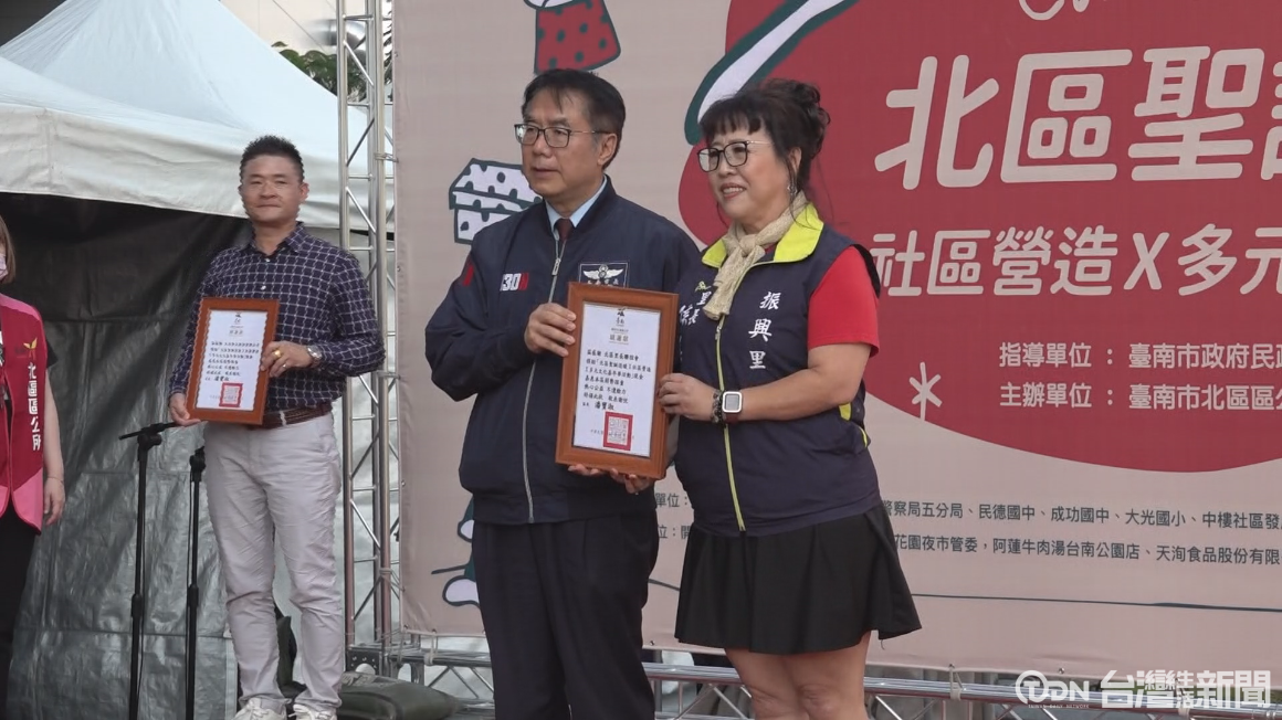 臺南市北區區公所假日辦理「愛心無界 溫馨聖誕」聖誕禮金捐助儀式,由黃偉哲市長親自頒發感謝狀致意,感謝善心單位和人士讓北區弱勢學童與善牧嬰兒之家,能夠歡度溫馨的聖誕佳節。
