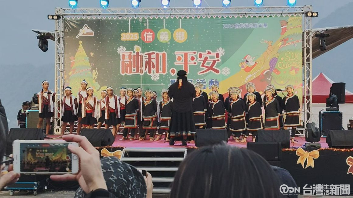 ▲信義鄉羅娜國小合唱團獻上美妙歌聲陪伴遊客歡度佳節/記者金芸亘攝
