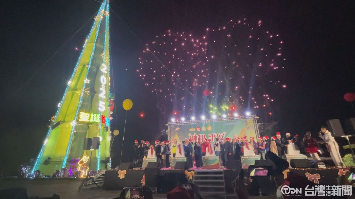 2025南投花卉嘉年華系列活動-信義鄉羅娜聖誕活動,24日晚間在羅娜文化景觀園區盛大展開,除有27公尺高的美麗聖誕樹,還有沿著部落大街打造的燦爛燈海隧道,吸引大批遊客參加,縣長許淑華與信義鄉長全志堅帶領來賓共同點亮聖誕樹主燈,互相祝福聖誕快樂。
