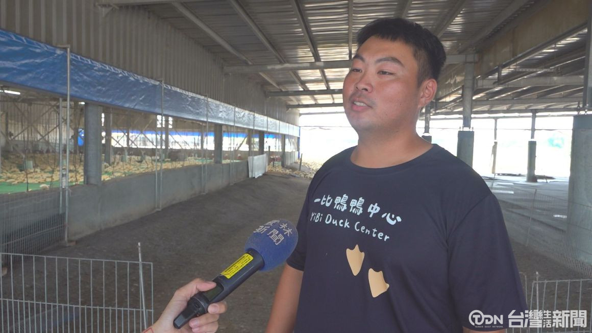 ▲斗南一對夫妻李東穎、楊靜雯,原本都是職業軍官,為照顧家裡的長輩,退伍後返鄉接手阿公阿嬤的養鴨事業,從頭開始學起,將家中的傳統鴨池,部分轉型做現代化的室內鴨場,專門跟人契作代養小鴨 / 記者 王可萱 攝