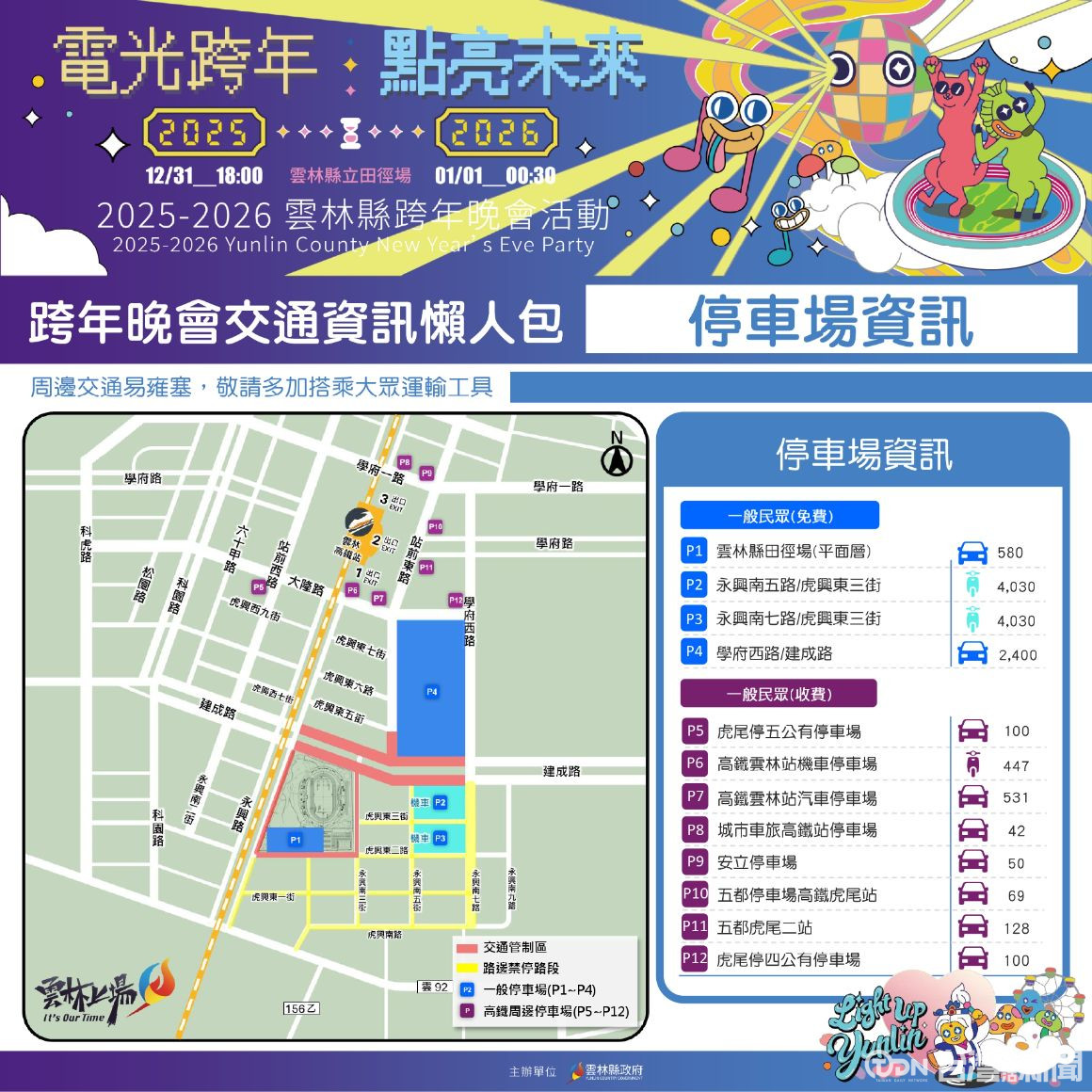 ▲2025-2026雲林跨年會場周邊停車場資訊 / 雲林縣政府 提供