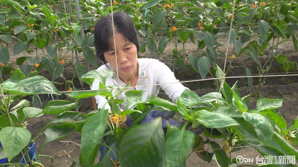 ▲一步步將植栽整理好,也將採收的甜椒送去催熟。/記者 陳佳昇 攝。