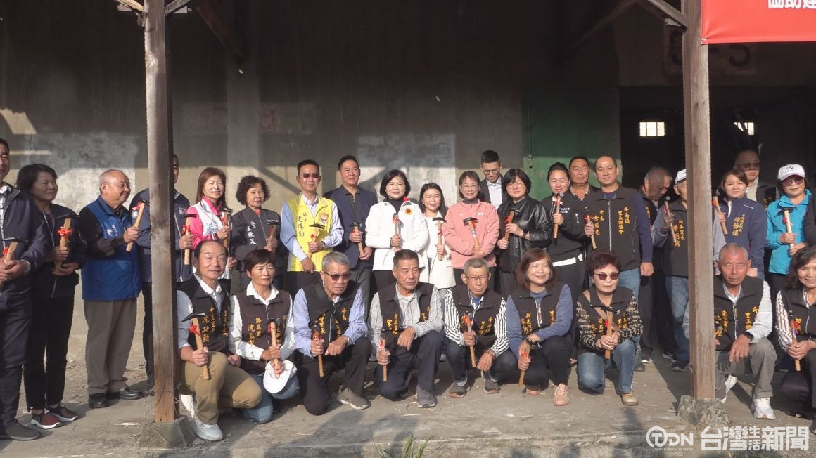 ▲斗南火車頭後站鐵路邊的糧食局倉庫閒置多年,經縣府推動,跟逢甲大學合作,配合他們學校的「建築小書屋」計畫,要來將這修復、活化,打造為「鐵道小書屋」,經過4月份的說明會,以及媒合到中部一間營造企業願意挹注經費,這天進行動工祈福典禮 / 記者 王可萱 攝