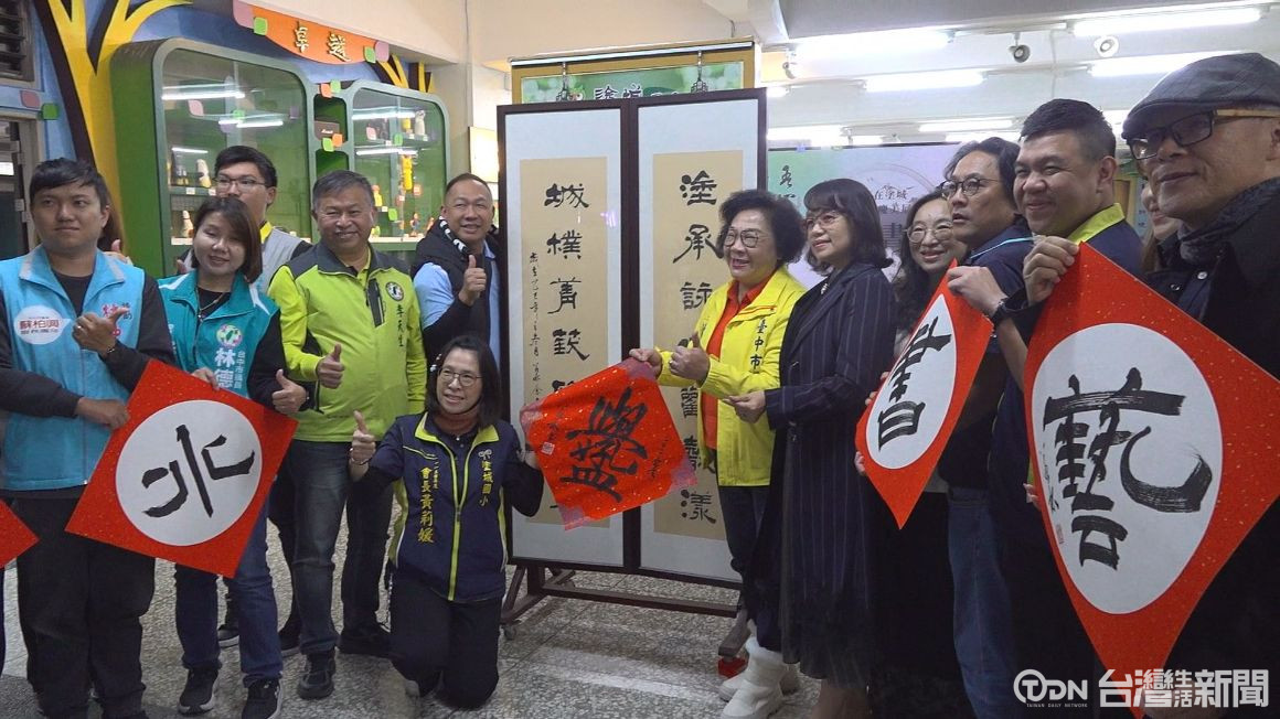 大里區塗城國小這天慶祝106週年校慶,學校除了規劃趣味競賽及園遊會等等活動,邀請家長與小朋友同樂,還規劃了書法家余麗君師生聯展,推廣書法這傳統藝術外,校慶也增添藝文氣息。