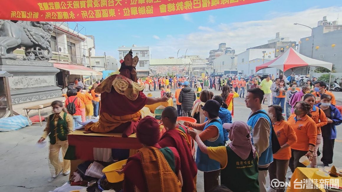 ▲永康大臺南凌霄寶殿武龍宮歲末寒冬送暖祈福,連續十年火供法會為弱勢民眾加持祈願。/記者 蕭建緯攝