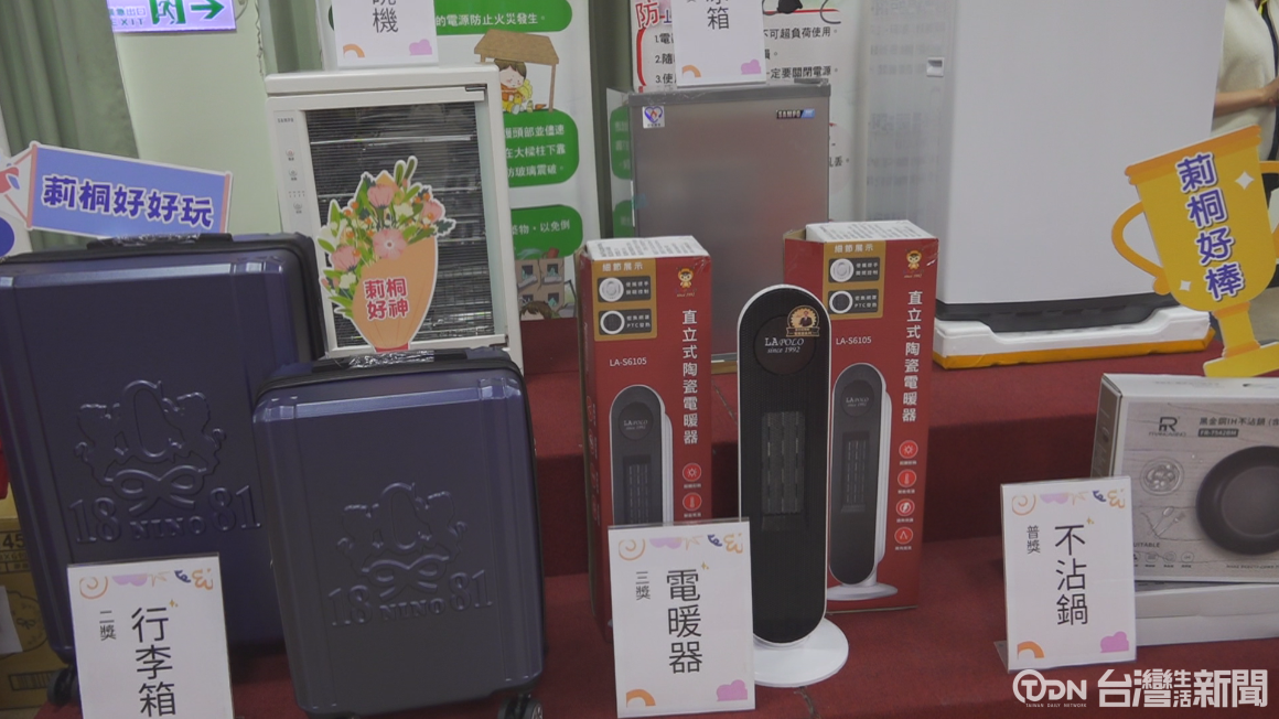 ▲莿桐公所準備洗衣機、小冰箱、烘碗機等實用家電用品摸彩,民眾只要全程參加蒐集3個健行印章就可摸彩/記者 江儀 攝